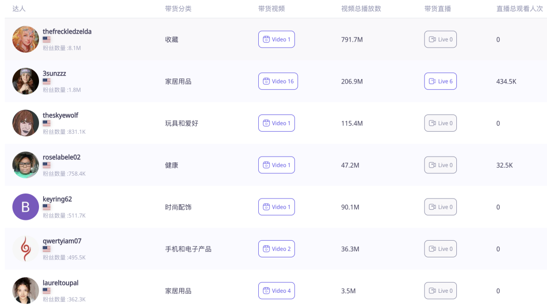 该商品在TikTok的建联达人总数达53人。从达人画像上看,达人以女性为主,多数分布在「收藏」分类。他们有一个共同爱好——喜欢收藏各种3D打印的玩具。