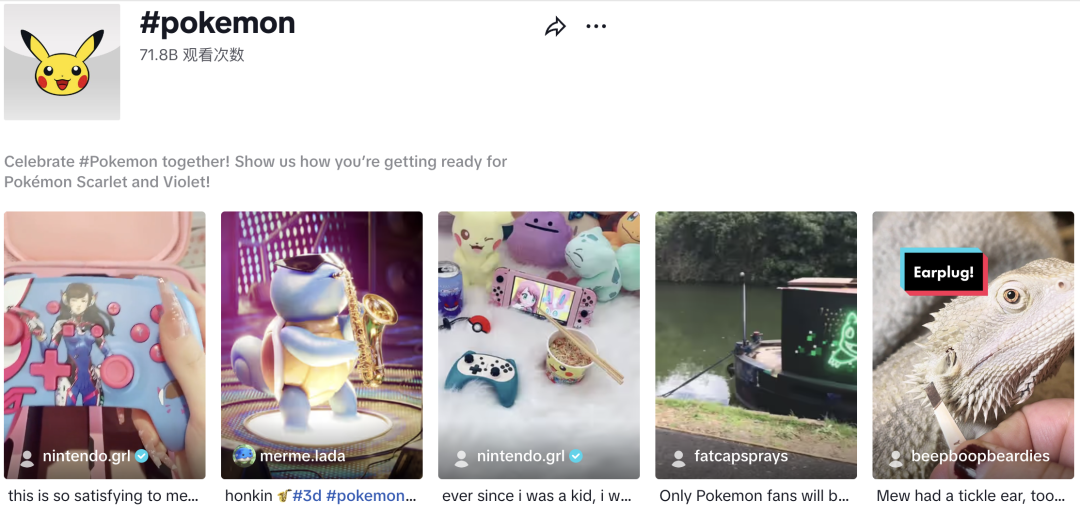 在TikTok,有关《宝可梦》的热门标签#Pokemon 已经有超过7.1亿次的曝光。来自全球的同好在社区分享他们的收藏以及相关的「meme」。