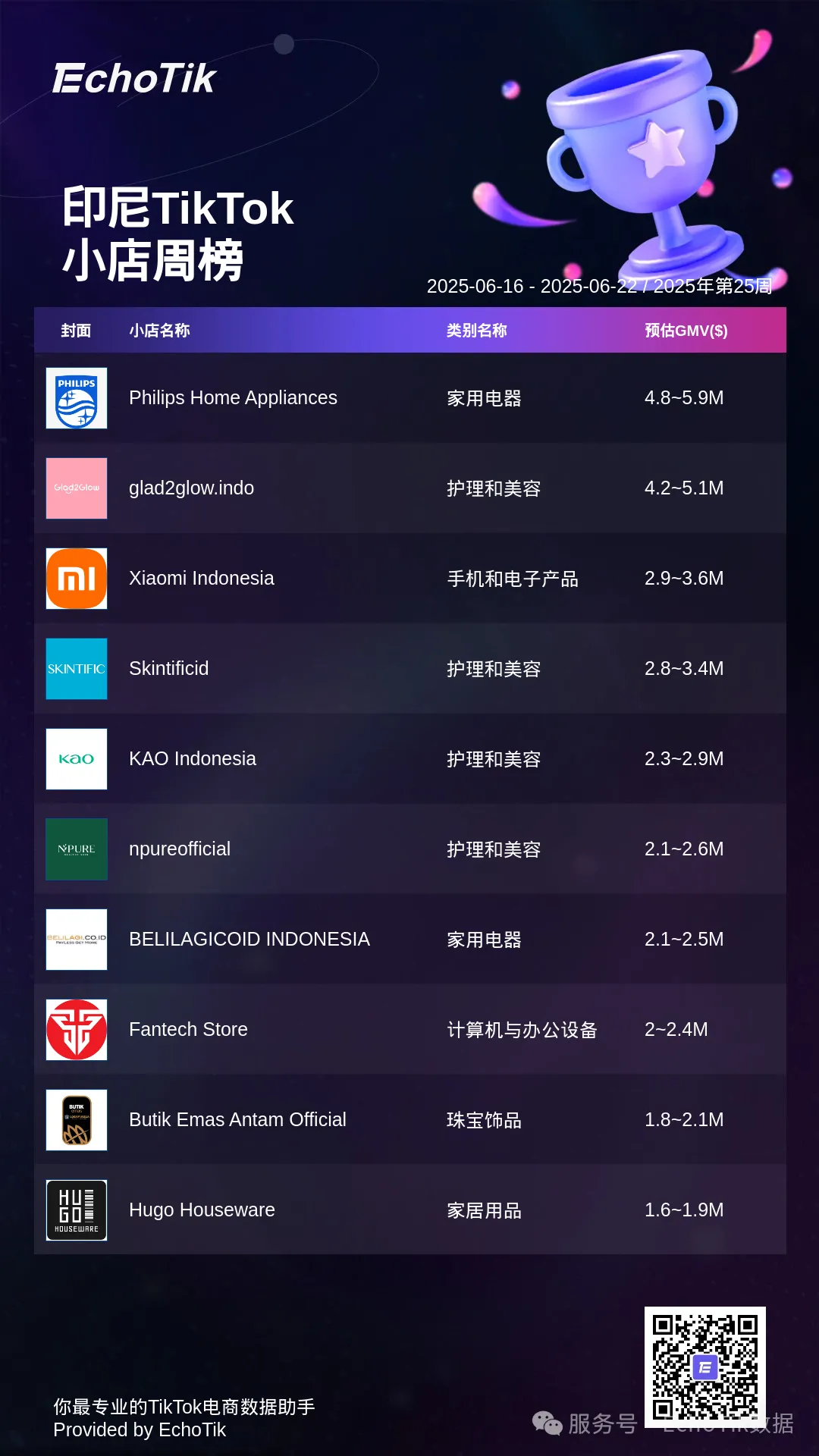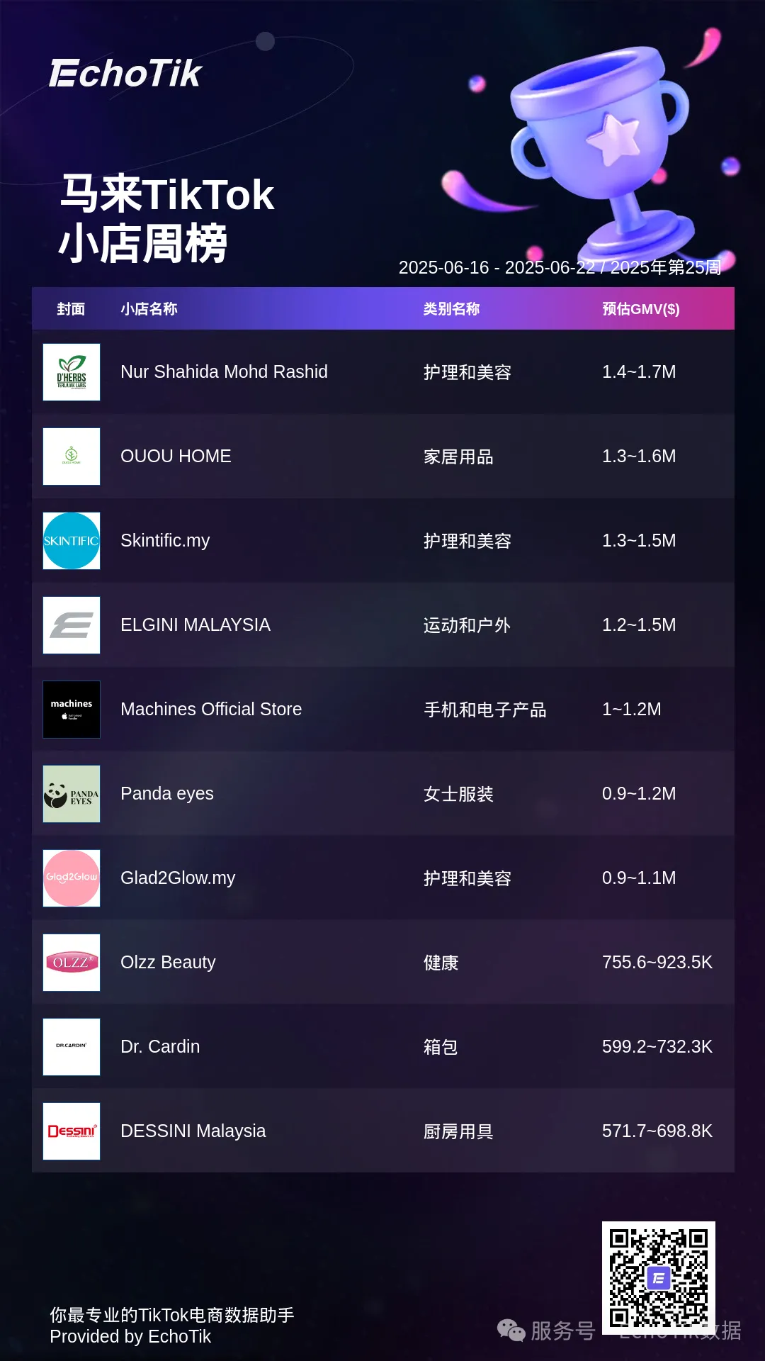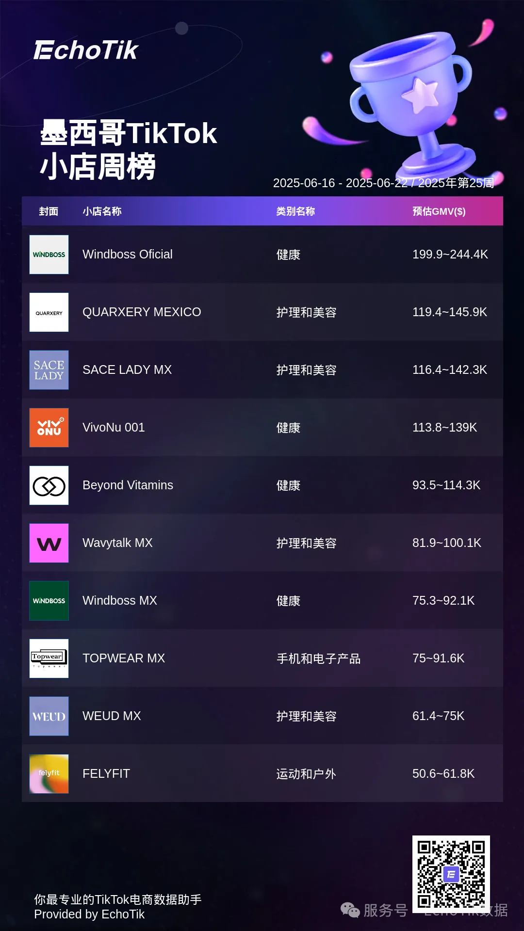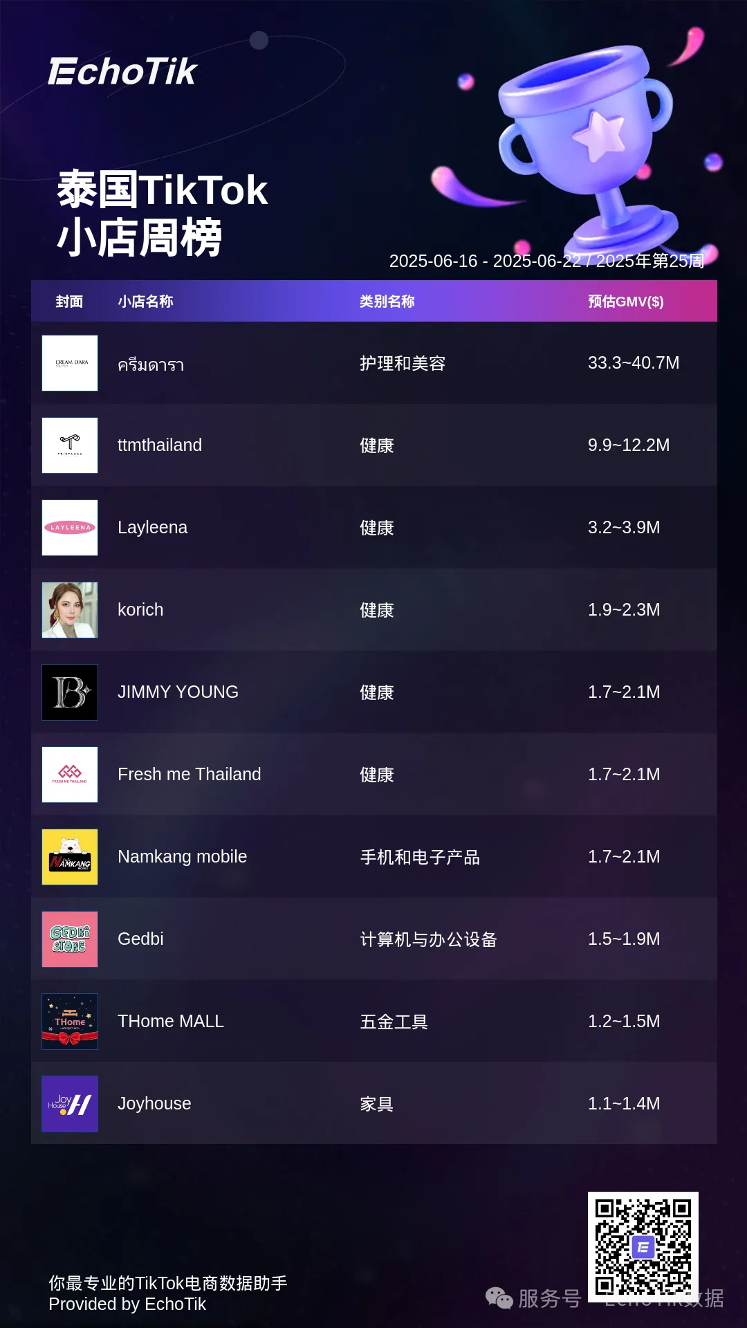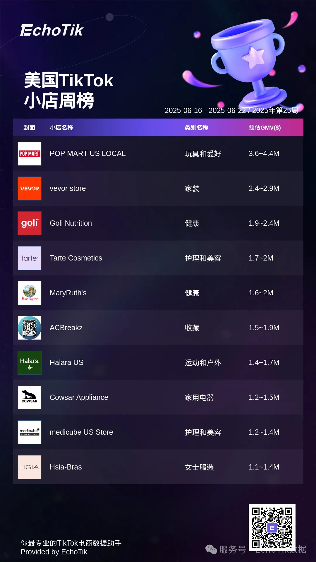 本周的TikTok Shop小店周榜,揭示最受欢迎的小店名称和类别。