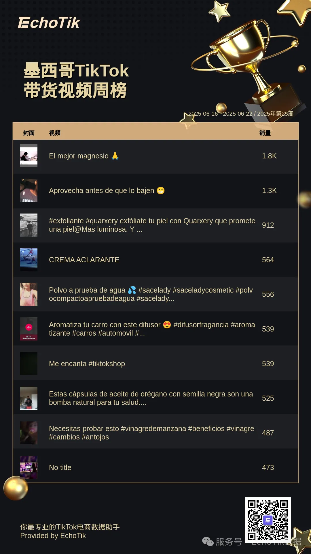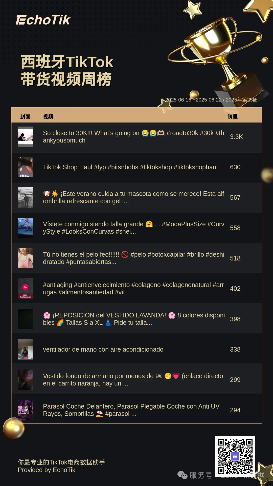TikTok Shop带货视频周榜