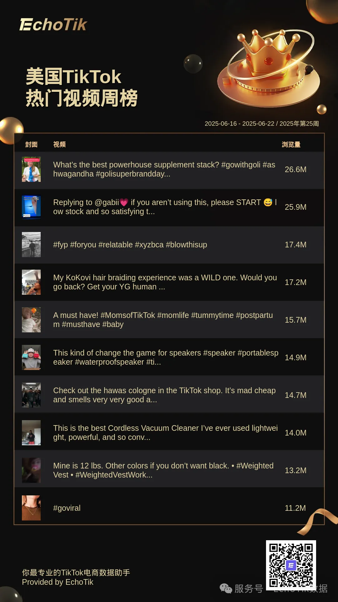 带货视频周榜