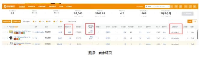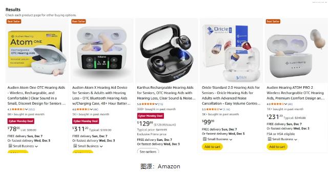 Amazon搜索hearing aid显示,多款助听器销量都很可观,其中一款助听器,今年4月18号上线,位居Amazon畅销榜TOP1,月销8629件,销售额超72.1美金。